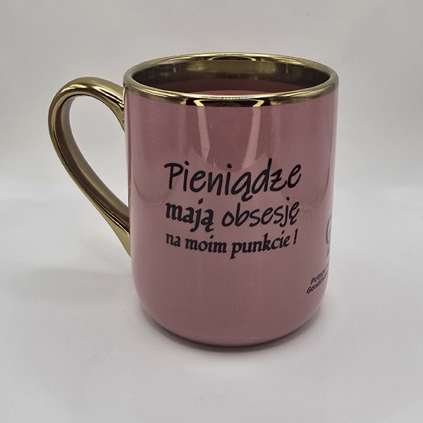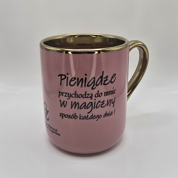 Kolor: różowy- ze złotym rantem i uchem