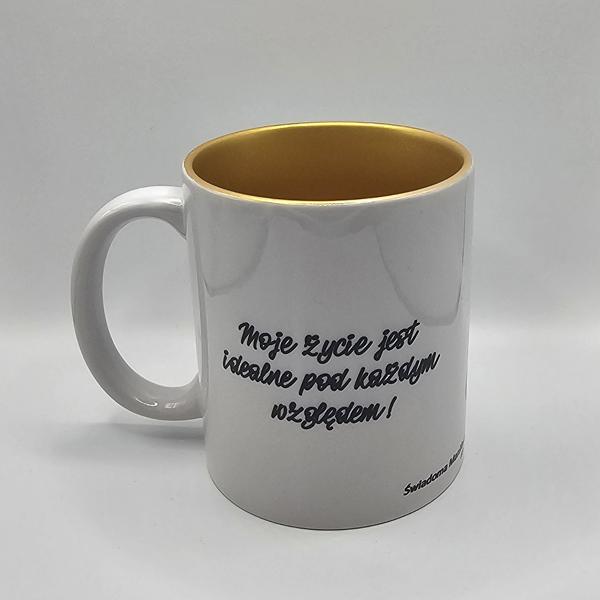 Kubek biały ze złotym wnętrzem z afirmacjami po obydwu stronachDostępność: 9 w magazynie