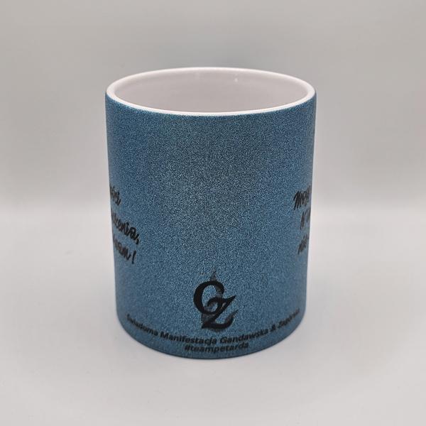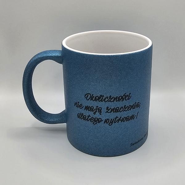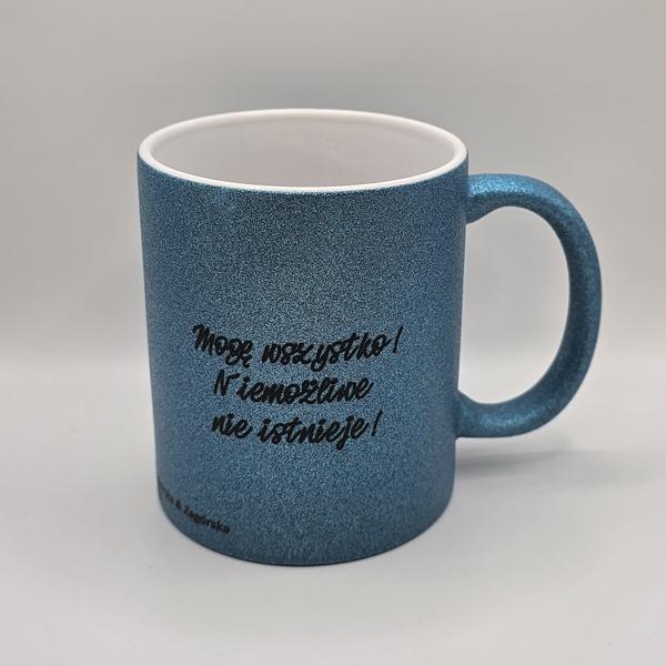 Brokatowy kubek niebieski z afirmacjami po obydwu stronachDostępność: 5 w magazynie