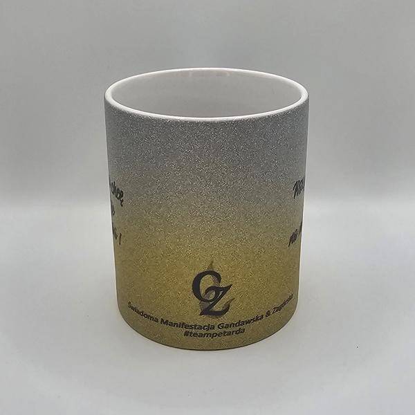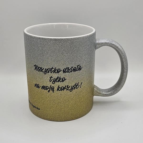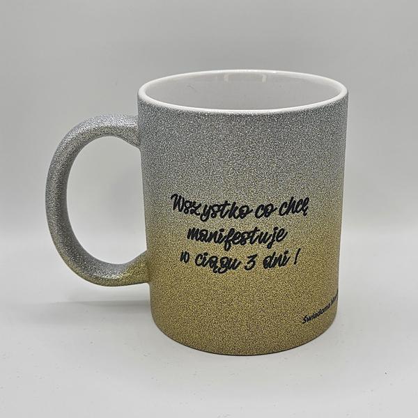 Brokatowy kubek srebrno-złoty gradient z afirmacjami po obydwu stronach