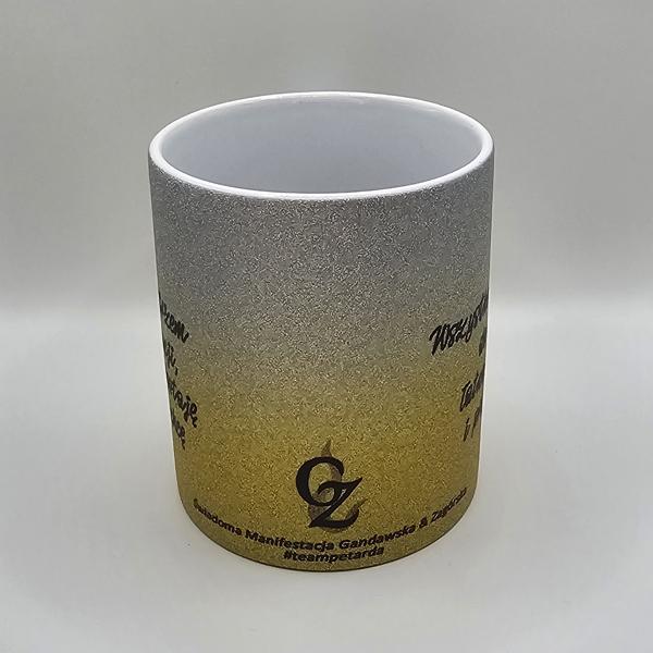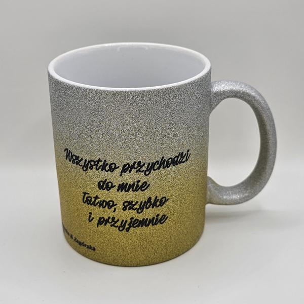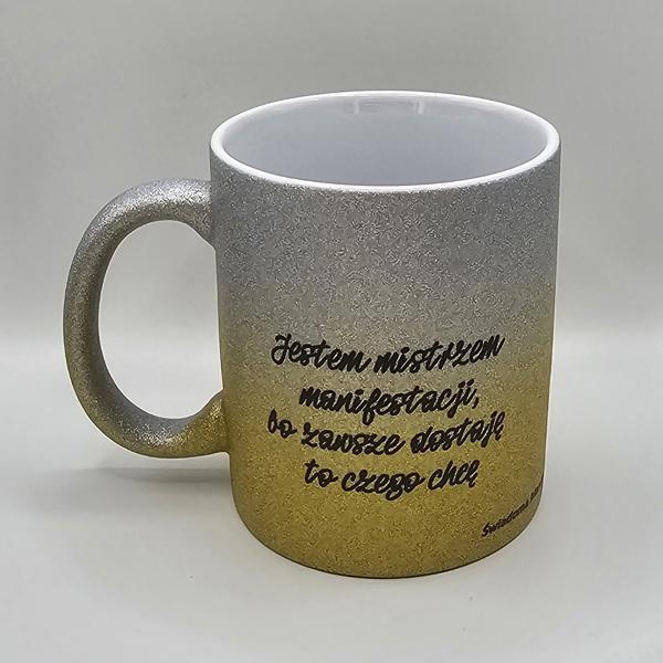 Brokatowy kubek srebrno-złoty gradient z afirmacjami po obydwu stronachDostępność: 10 w magazynie (może być zamówiony)