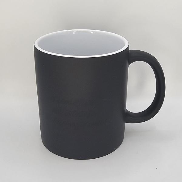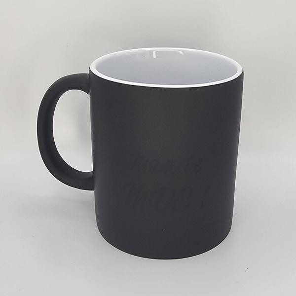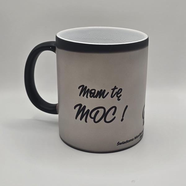 To magiczny kubek, który w pokojowej temperaturze jest z zewnątrz cały czarny. Po wlaniu gorącego napoju czarny kolor znika odsłaniając afirmacje.