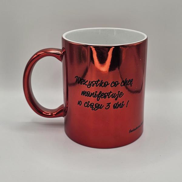 Kubek platerowany czerwony z afirmacjami po obydwu stronachDostępność: 2 w magazynie