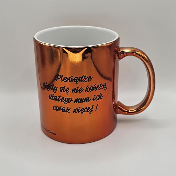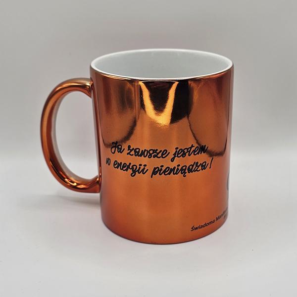 Kubek platerowany pomarańczowy z afirmacjami po obydwu stronachDostępność: 5 w magazynie