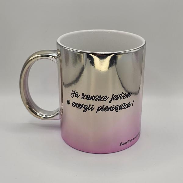 Kubek platerowany srebrno-różowy z afirmacjami po obydwu stronachDostępność: 3 w magazynie