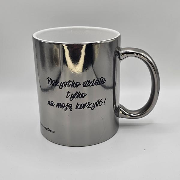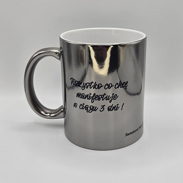 Kubek platerowany srebrny z afirmacjami po obydwu stronach