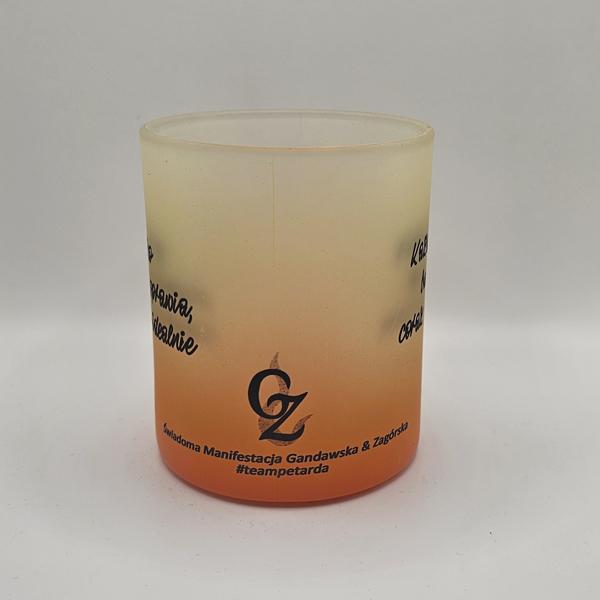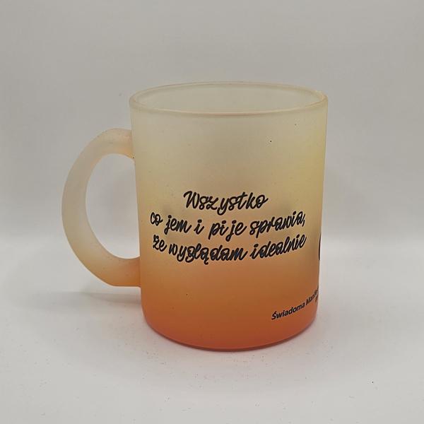 Kubek szroniony pomarańczowy z afirmacjami po obydwu stronachDostępność: 2 w magazynie