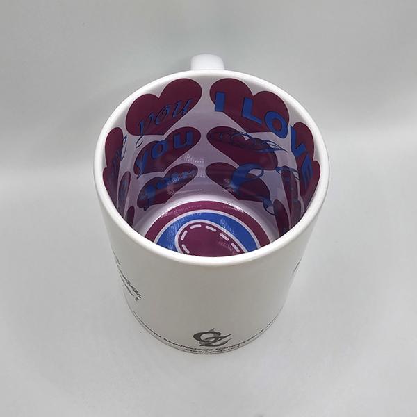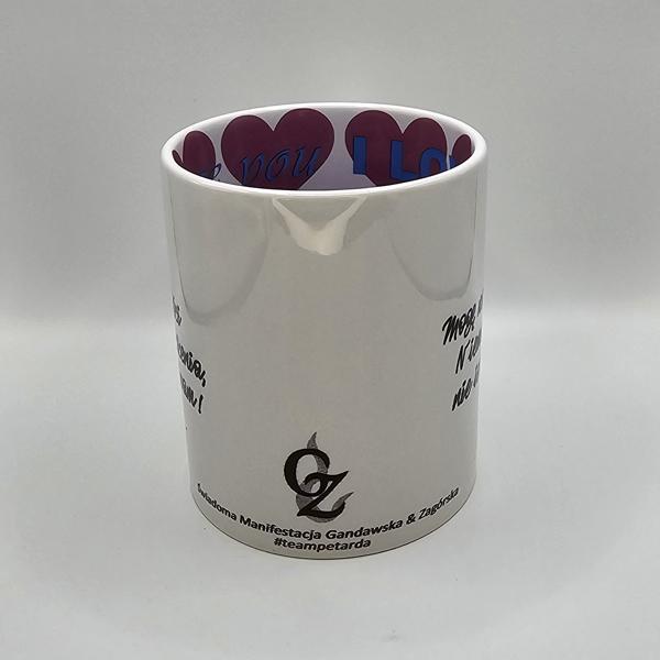 Wnętrze kubka wypełniają napisy „I Love You” oraz serca