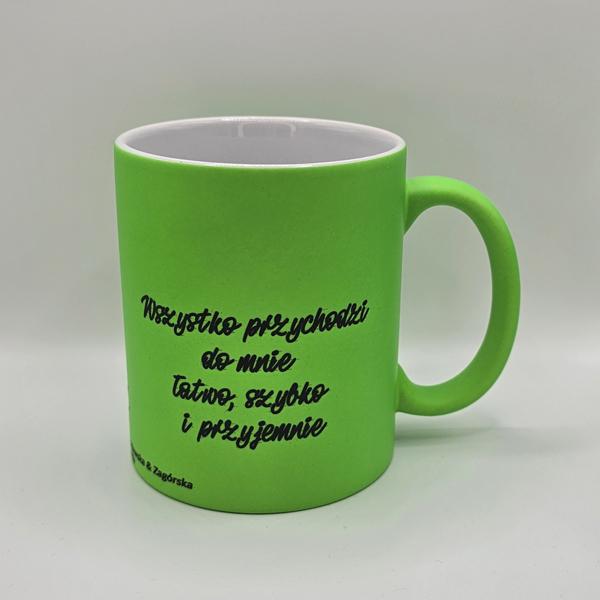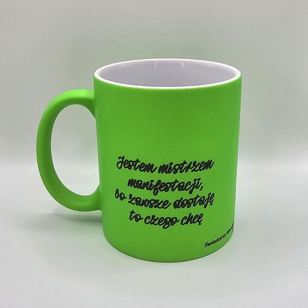 Kubek matowy FLUO zielony z afirmacjami po obydwu stronachKubek matowy FLUO zielony z afirmacjami po obydwu stronach